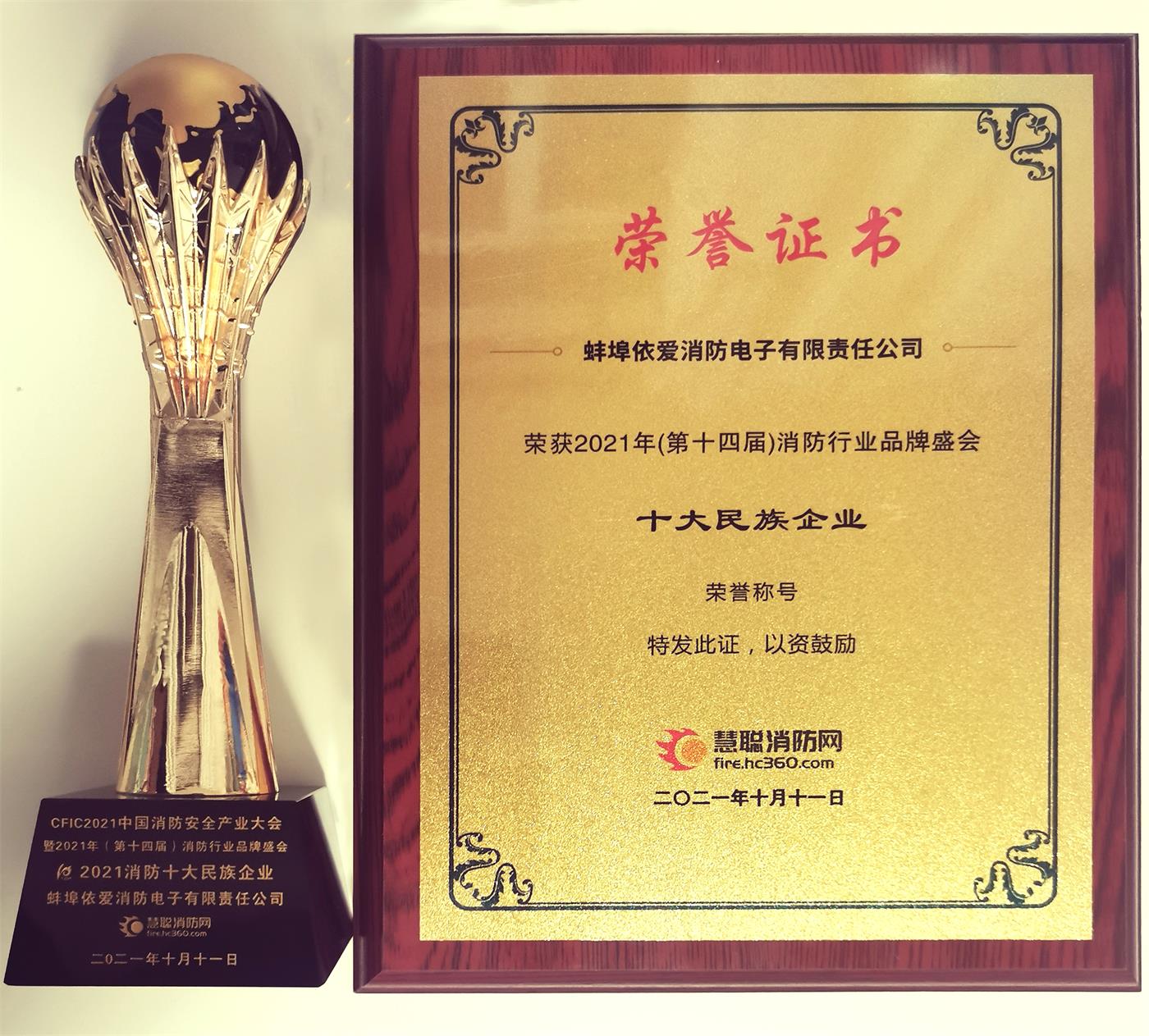 喜報(bào):依愛消防榮獲“2021消防十大民族企業(yè)”獎(jiǎng)項(xiàng)
