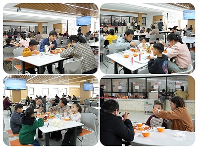 中午時分,家屬與員工一起到食堂就餐,感受到家的溫暖,其樂融融。